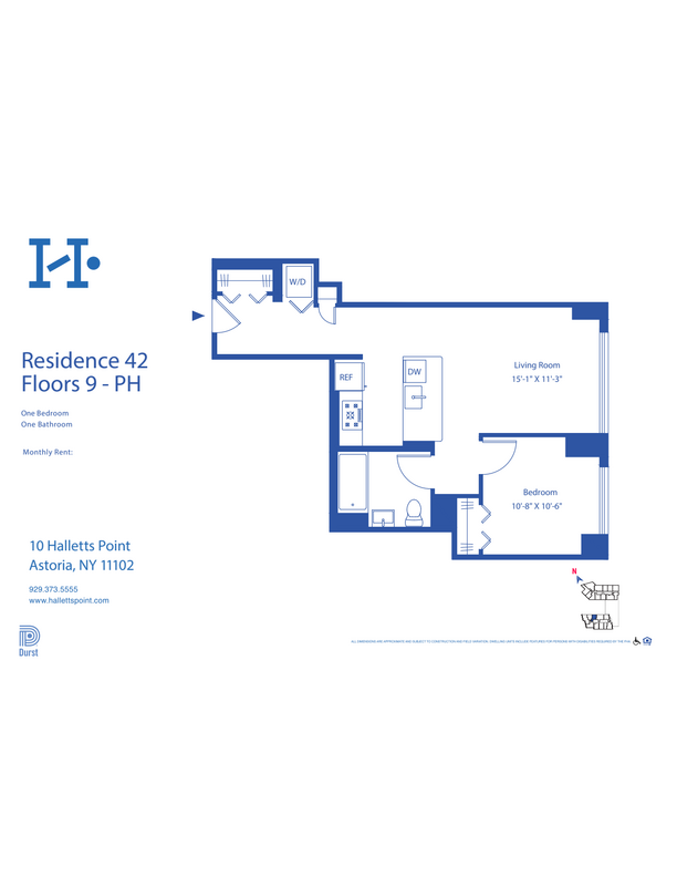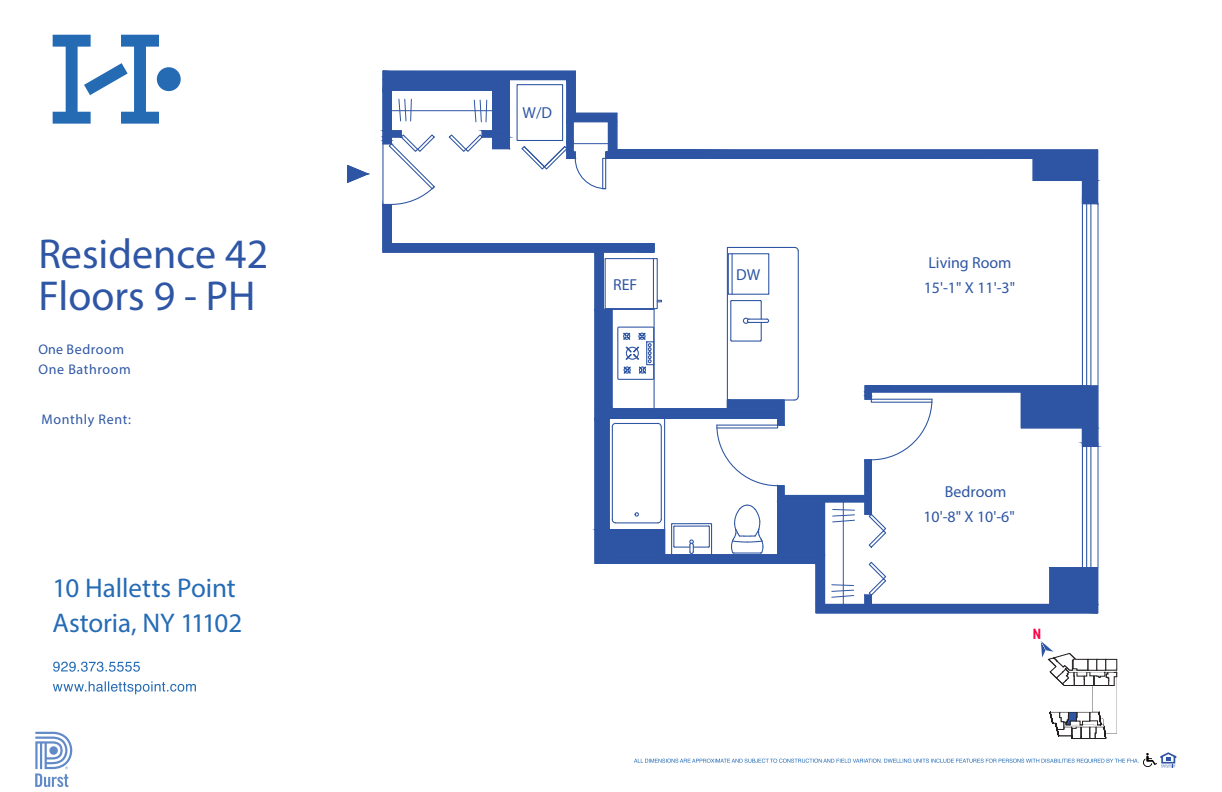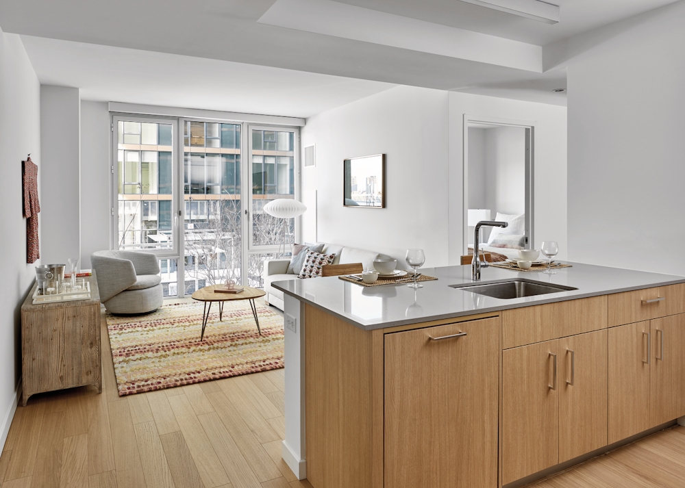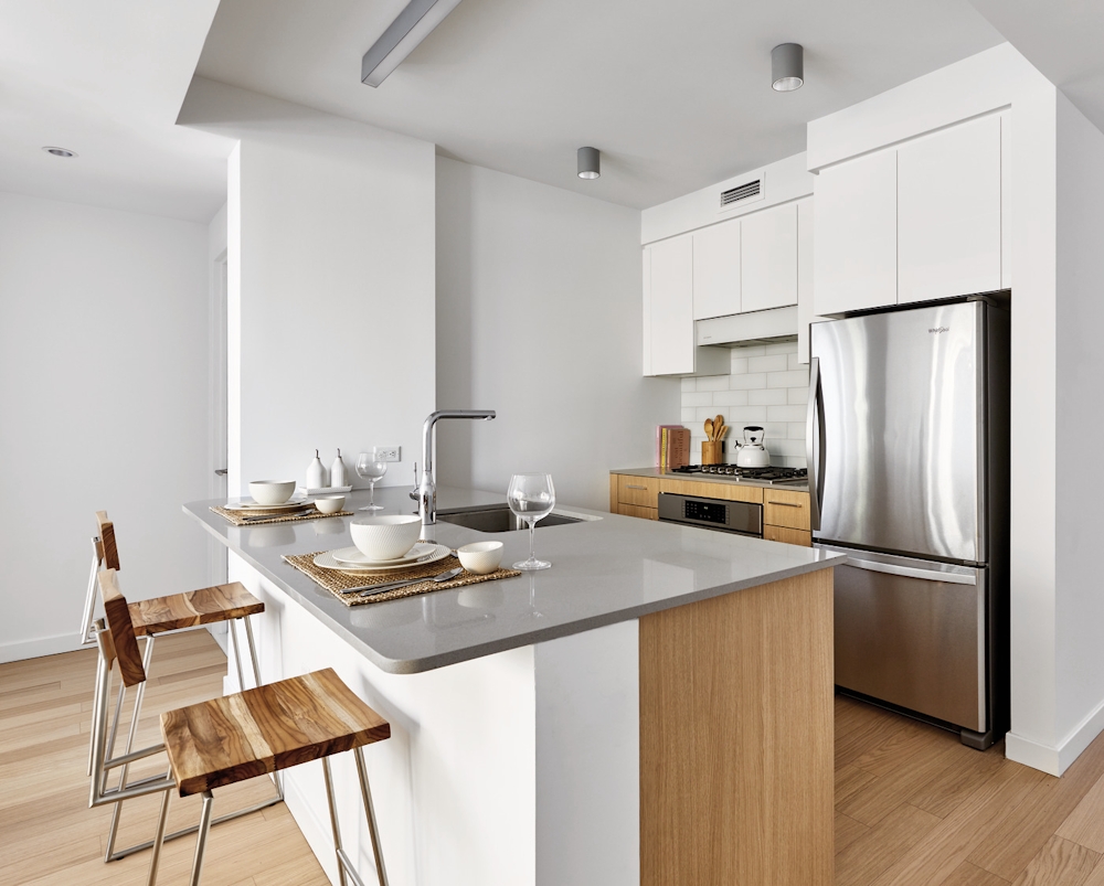 Bright 1 Bedroom 1 Bath featuring an open kitchen with island counter-top and ample closet space.
