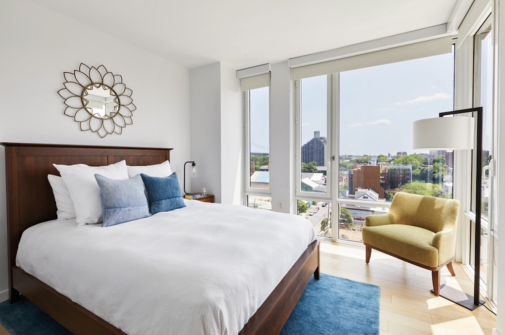 Expansive 1 Bedroom 1 Bathroom with gourmet kitchen, bright open living room and direct views of NYC!
