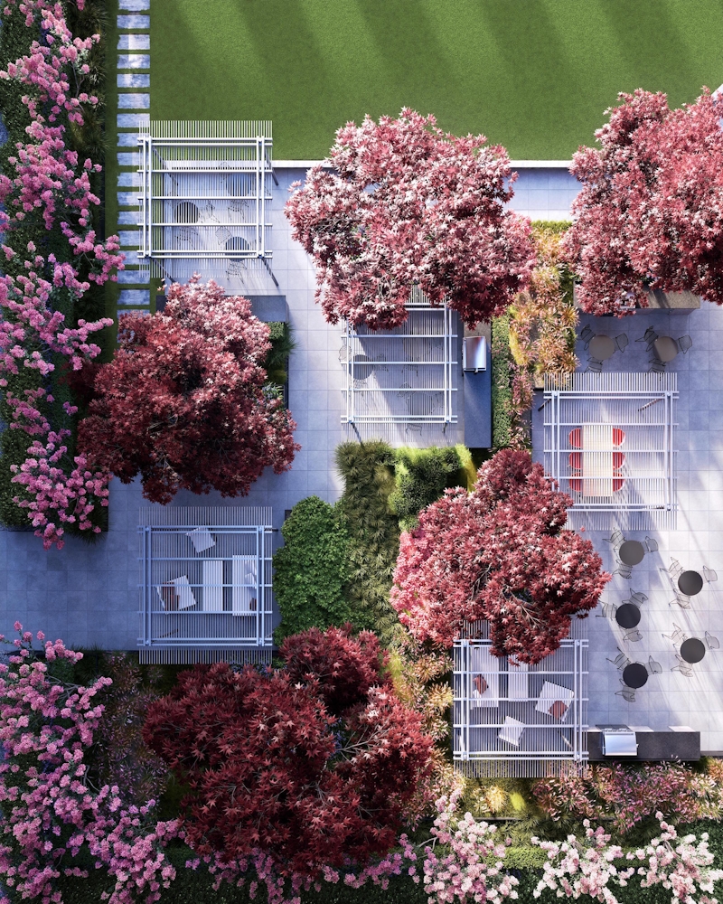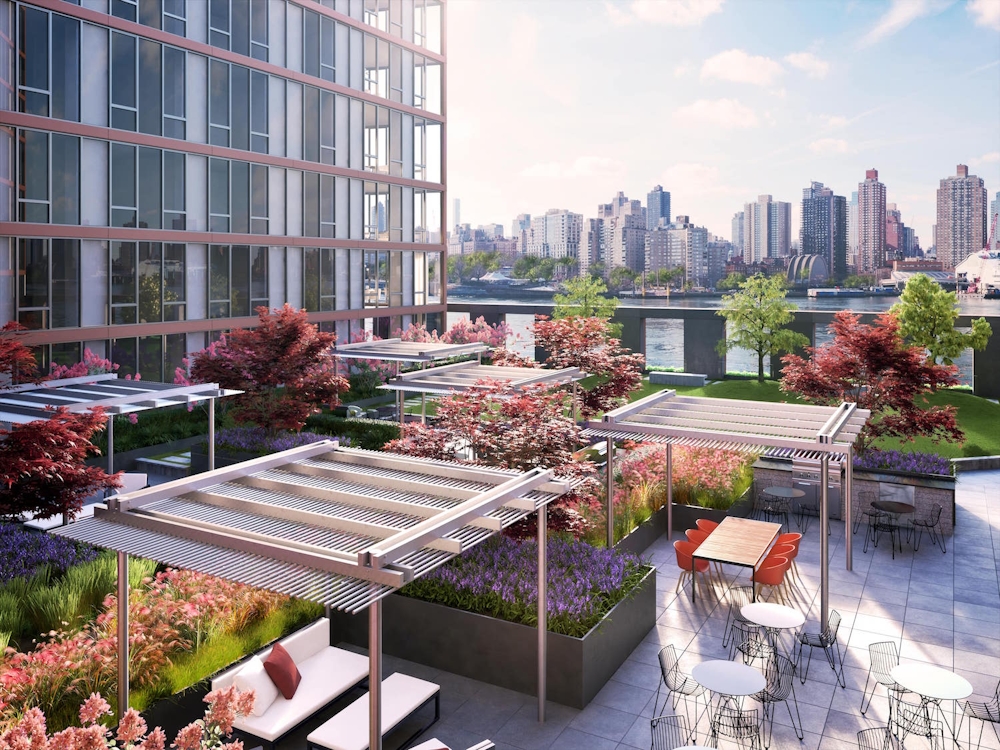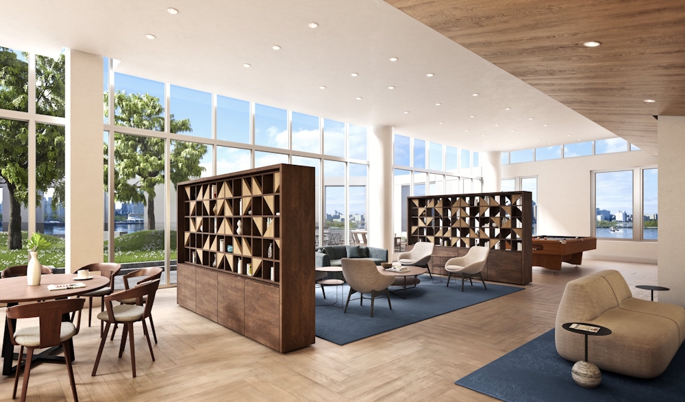 62,500 square feet of amenities provide ample room to relax, recreate, and indulge. Offerings include an outdoor pool with sweeping city and river views, BBQ grills and alfresco dining areas, state-of-the-art fitness centers, lounges, game room, screening room, recording studio, coworking lounge, children’s playrooms, and more.