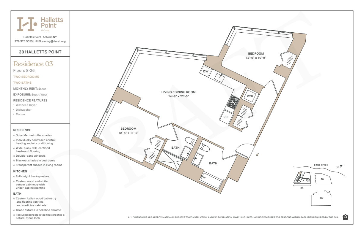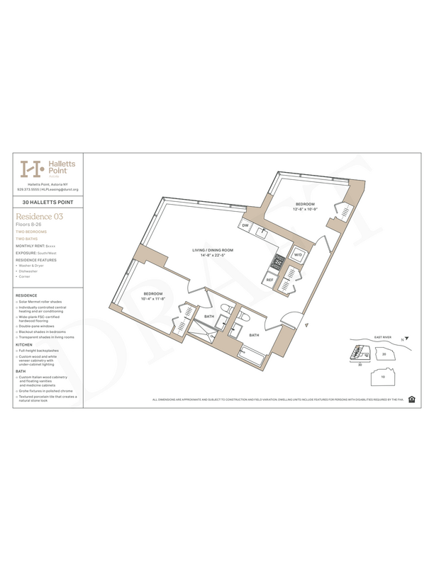 FARE Act Disclosure. This listing is intended to be used by prospective renters and may not be republished without the prior written consent of The Durst Organization. Absent an express written agreement or acknowledgment to the contrary, The Durst Organization and its affiliates (1) do not utilize the services of third-party brokers or agents in connection with the rental of residential apartments and (2) will not assume responsibility for any brokerage fees incurred by a prospective renter. The Durst Organization and its affiliates will not charge or collect fees from a prospective renter except for such fees as permitted by law and disclosed to the prospective renter.