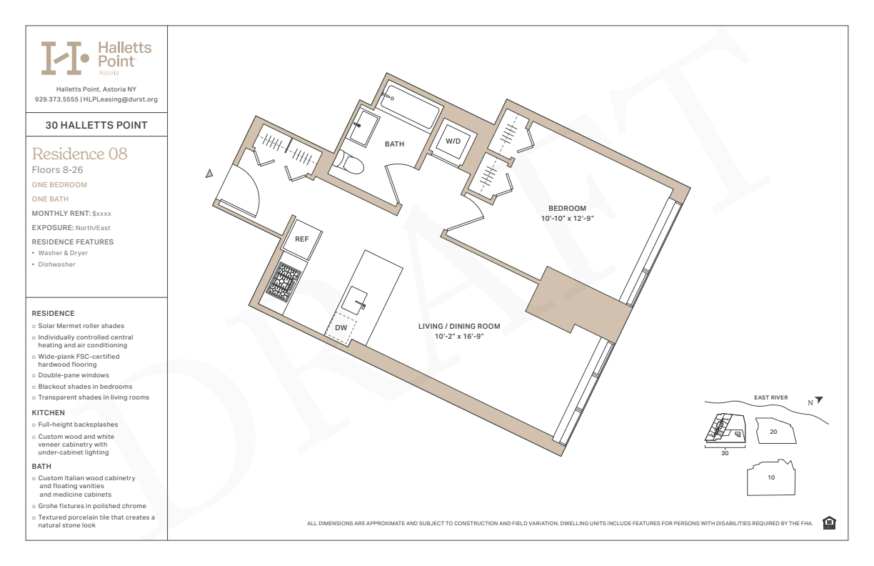 FARE Act Disclosure. This listing is intended to be used by prospective renters and may not be republished without the prior written consent of The Durst Organization. Absent an express written agreement or acknowledgment to the contrary, The Durst Organization and its affiliates (1) do not utilize the services of third-party brokers or agents in connection with the rental of residential apartments and (2) will not assume responsibility for any brokerage fees incurred by a prospective renter. The Durst Organization and its affiliates will not charge or collect fees from a prospective renter except for such fees as permitted by law and disclosed to the prospective renter.