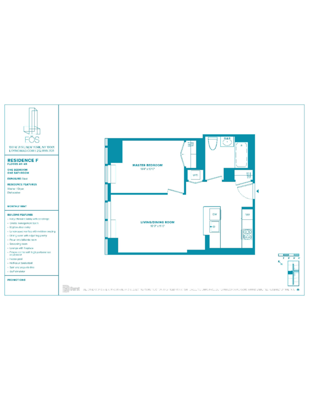 FARE Act Disclosure. This listing is intended to be used by prospective renters and may not be republished without the prior written consent of The Durst Organization. Absent an express written agreement or acknowledgment to the contrary, The Durst Organization and its affiliates (1) do not utilize the services of third-party brokers or agents in connection with the rental of residential apartments and (2) will not assume responsibility for any brokerage fees incurred by a prospective renter. The Durst Organization and its affiliates will not charge or collect fees from a prospective renter except for such fees as permitted by law and disclosed to the prospective renter.