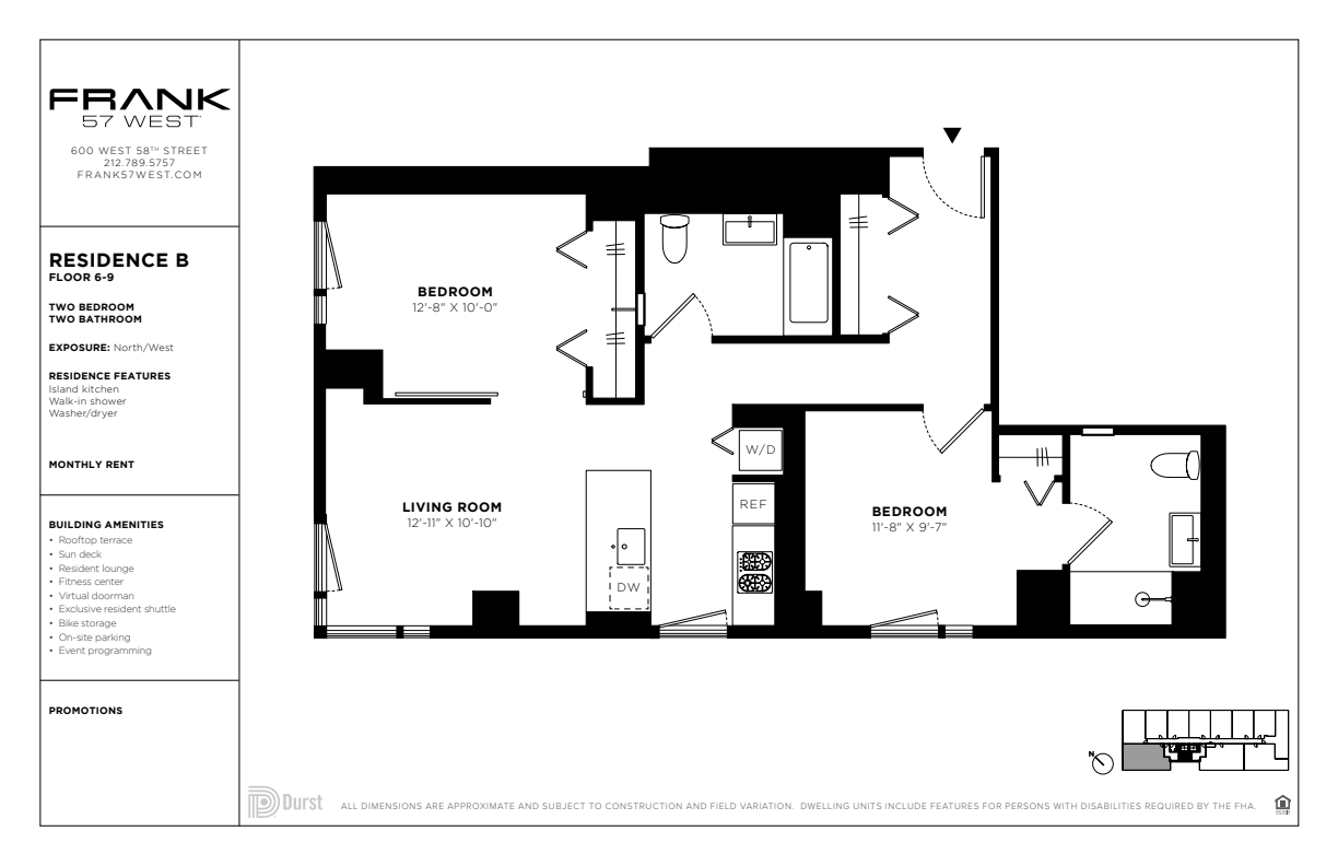 FARE Act Disclosure. This listing is intended to be used by prospective renters and may not be republished without the prior written consent of The Durst Organization. Absent an express written agreement or acknowledgment to the contrary, The Durst Organization and its affiliates (1) do not utilize the services of third-party brokers or agents in connection with the rental of residential apartments and (2) will not assume responsibility for any brokerage fees incurred by a prospective renter. The Durst Organization and its affiliates will not charge or collect fees from a prospective renter except for such fees as permitted by law and disclosed to the prospective renter.