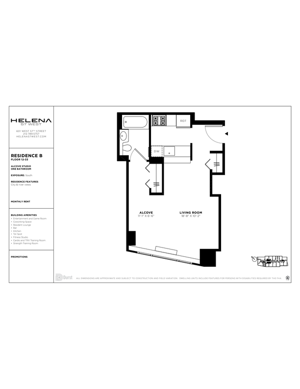 • 12 to 24 -month lease terms available. Rates will vary by the lease term. Best available rate is advertised. • Pricing and availability change daily. Terms and conditions apply. • No Fee • $1,000 Reduced Security Deposit (for qualified applicants; restrictions apply) • Pet Friendly- 1 or 2 dogs with a combined weight up to 65 lbs. • Rent Stabilized • Laundry facilities located on every floor • The model images shown may not represent the specific apartment home • Complimentary Rooftop Lounge and Shuttle Service to Columbus Circle