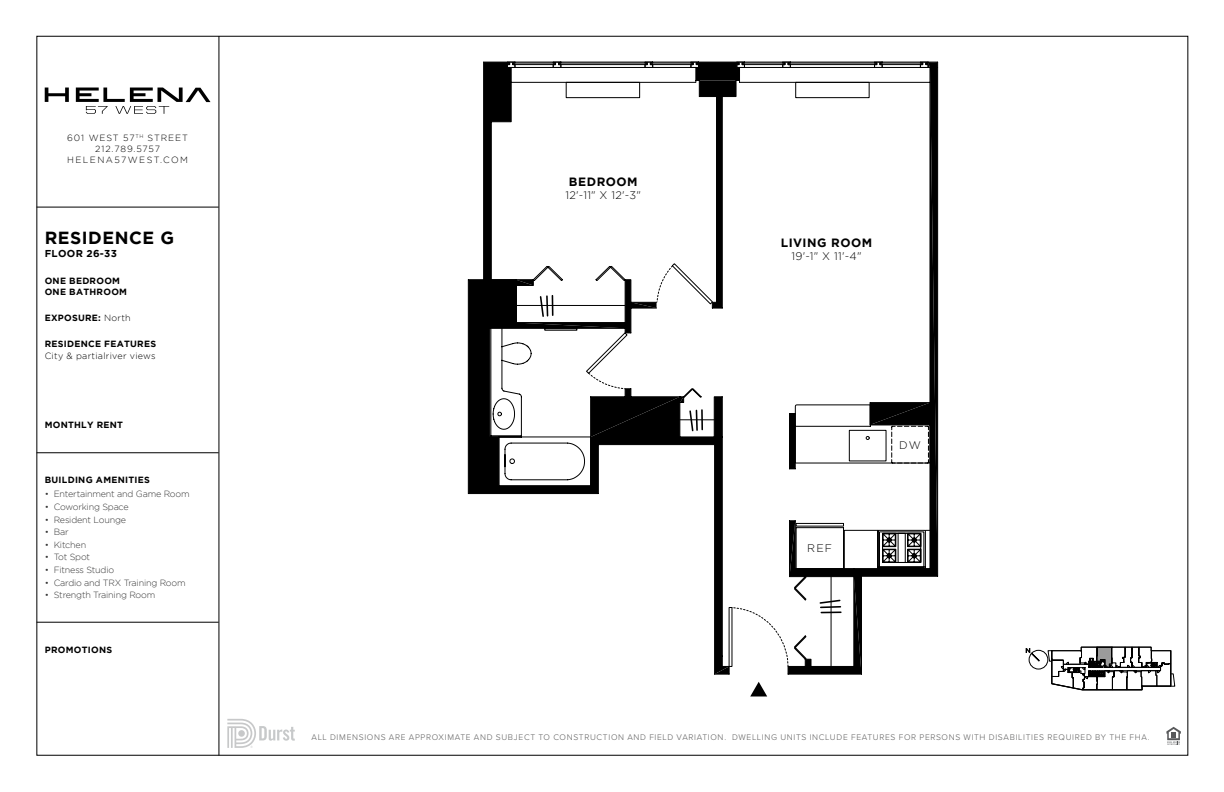 FARE Act Disclosure. This listing is intended to be used by prospective renters and may not be republished without the prior written consent of The Durst Organization. Absent an express written agreement or acknowledgment to the contrary, The Durst Organization and its affiliates (1) do not utilize the services of third-party brokers or agents in connection with the rental of residential apartments and (2) will not assume responsibility for any brokerage fees incurred by a prospective renter. The Durst Organization and its affiliates will not charge or collect fees from a prospective renter except for such fees as permitted by law and disclosed to the prospective renter.