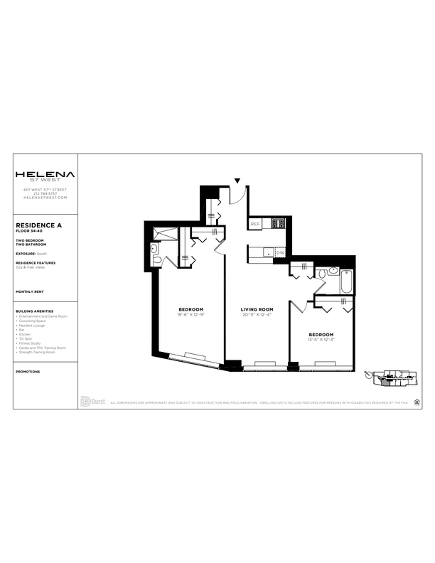 • 12 to 24 -month lease terms available. Rates will vary by the lease term. Best available rate is advertised. • Pricing and availability change daily. Terms and conditions apply. • No Fee • $1,000 Reduced Security Deposit (for qualified applicants; restrictions apply) • Pet Friendly- 1 or 2 dogs with a combined weight up to 65 lbs. • Rent Stabilized • Laundry facilities located on every floor • The model images shown may not represent the specific apartment home • Complimentary Rooftop Lounge and Shuttle Service to Columbus Circle