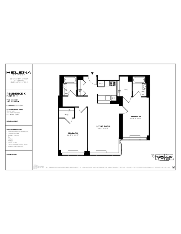 • 12 to 24 -month lease terms available. Rates will vary by the lease term. Best available rate is advertised. • Pricing and availability change daily. Terms and conditions apply. • No Fee • $1,000 Reduced Security Deposit (for qualified applicants; restrictions apply) • Pet Friendly- 1 or 2 dogs with a combined weight up to 65 lbs. • Rent Stabilized • Laundry facilities located on every floor • The model images shown may not represent the specific apartment home • Complimentary Rooftop Lounge and Shuttle Service to Columbus Circle