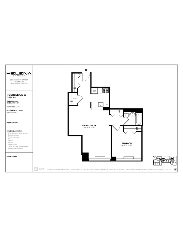 • 12 to 24 -month lease terms available. Rates will vary by the lease term. Best available rate is advertised. • Pricing and availability change daily. Terms and conditions apply. • No Fee • $1,000 Reduced Security Deposit (for qualified applicants; restrictions apply) • Pet Friendly- 1 or 2 dogs with a combined weight up to 65 lbs. • Rent Stabilized • Laundry facilities located on every floor • The model images shown may not represent the specific apartment home • Complimentary Rooftop Lounge and Shuttle Service to Columbus Circle
