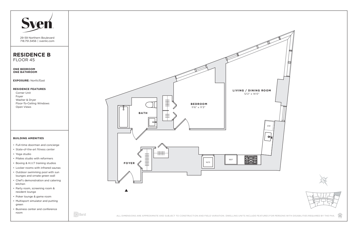 Just 10 minutes from Manhattan, Sven offers an unmatched experience; luxury living, exceptional amenities, and a location primed for exploration and access. Designed by Handel Architects, Sven offers studio to three-bedroom residences featuring light oak wood flooring, European quartz countertops, glass tile backsplashes, and stainless-steel appliances from Bosch and Liebherr. Spa-inspired bathrooms boast Italian wood cabinetry, Roca porcelain tile, and high-performance water fixtures. All residences are equipped with high-efficiency Blomberg washers and dryers.