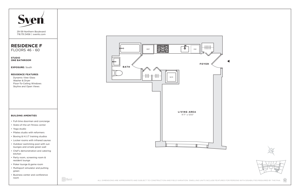Just 10 minutes from Manhattan, Sven offers an unmatched experience; luxury living, exceptional amenities, and a location primed for exploration and access. Designed by Handel Architects, Sven offers studio to three-bedroom residences featuring light oak wood flooring, European quartz countertops, glass tile backsplashes, and stainless-steel appliances from Bosch and Liebherr. Spa-inspired bathrooms boast Italian wood cabinetry, Roca porcelain tile, and high-performance water fixtures. All residences are equipped with high-efficiency Blomberg washers and dryers.