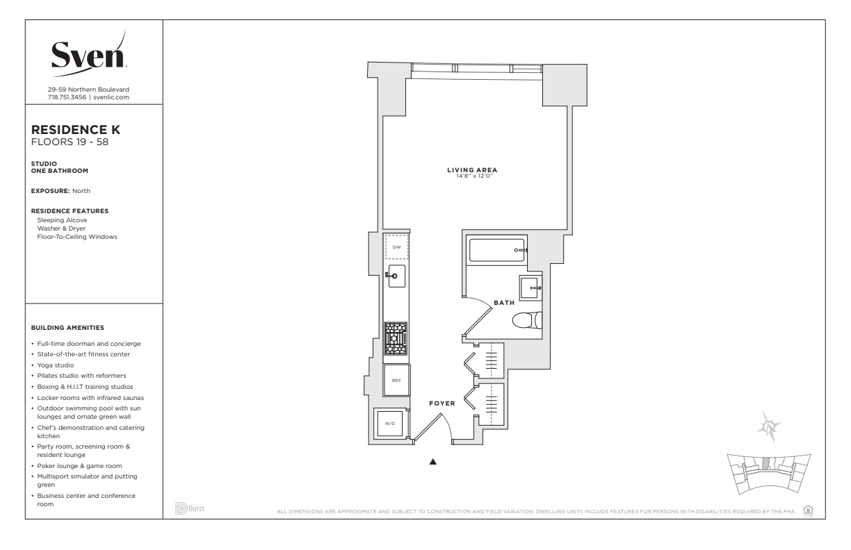 Just 10 minutes from Manhattan, Sven offers an unmatched experience; luxury living, exceptional amenities, and a location primed for exploration and access. Designed by Handel Architects, Sven offers studio to three-bedroom residences featuring light oak wood flooring, European quartz countertops, glass tile backsplashes, and stainless-steel appliances from Bosch and Liebherr. Spa-inspired bathrooms boast Italian wood cabinetry, Roca porcelain tile, and high-performance water fixtures. All residences are equipped with high-efficiency Blomberg washers and dryers.