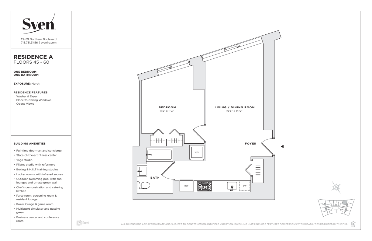 Just 10 minutes from Manhattan, Sven offers an unmatched experience; luxury living, exceptional amenities, and a location primed for exploration and access. Designed by Handel Architects, Sven offers studio to three-bedroom residences featuring light oak wood flooring, European quartz countertops, glass tile backsplashes, and stainless-steel appliances from Bosch and Liebherr. Spa-inspired bathrooms boast Italian wood cabinetry, Roca porcelain tile, and high-performance water fixtures. All residences are equipped with high-efficiency Blomberg washers and dryers.