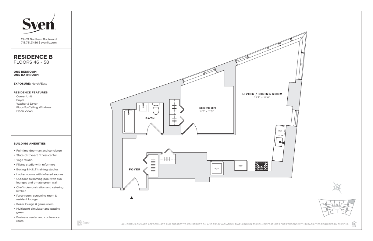 Just 10 minutes from Manhattan, Sven offers an unmatched experience; luxury living, exceptional amenities, and a location primed for exploration and access. Designed by Handel Architects, Sven offers studio to three-bedroom residences featuring light oak wood flooring, European quartz countertops, glass tile backsplashes, and stainless-steel appliances from Bosch and Liebherr. Spa-inspired bathrooms boast Italian wood cabinetry, Roca porcelain tile, and high-performance water fixtures. All residences are equipped with high-efficiency Blomberg washers and dryers.