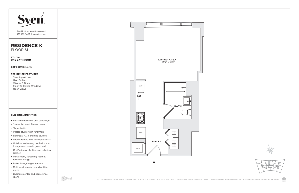 Just 10 minutes from Manhattan, Sven offers an unmatched experience; luxury living, exceptional amenities, and a location primed for exploration and access. Designed by Handel Architects, Sven offers studio to three-bedroom residences featuring light oak wood flooring, European quartz countertops, glass tile backsplashes, and stainless-steel appliances from Bosch and Liebherr. Spa-inspired bathrooms boast Italian wood cabinetry, Roca porcelain tile, and high-performance water fixtures. All residences are equipped with high-efficiency Blomberg washers and dryers.