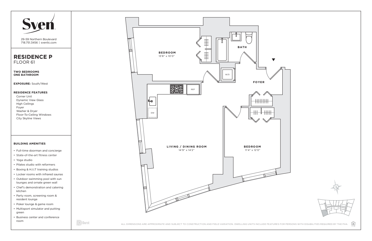 Just 10 minutes from Manhattan, Sven offers an unmatched experience; luxury living, exceptional amenities, and a location primed for exploration and access. Designed by Handel Architects, Sven offers studio to three-bedroom residences featuring light oak wood flooring, European quartz countertops, glass tile backsplashes, and stainless-steel appliances from Bosch and Liebherr. Spa-inspired bathrooms boast Italian wood cabinetry, Roca porcelain tile, and high-performance water fixtures. All residences are equipped with high-efficiency Blomberg washers and dryers.