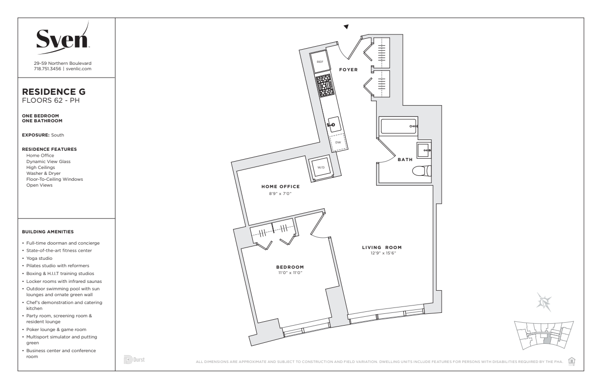 Just 10 minutes from Manhattan, Sven offers an unmatched experience; luxury living, exceptional amenities, and a location primed for exploration and access. Designed by Handel Architects, Sven offers studio to three-bedroom residences featuring light oak wood flooring, European quartz countertops, glass tile backsplashes, and stainless-steel appliances from Bosch and Liebherr. Spa-inspired bathrooms boast Italian wood cabinetry, Roca porcelain tile, and high-performance water fixtures. All residences are equipped with high-efficiency Blomberg washers and dryers.