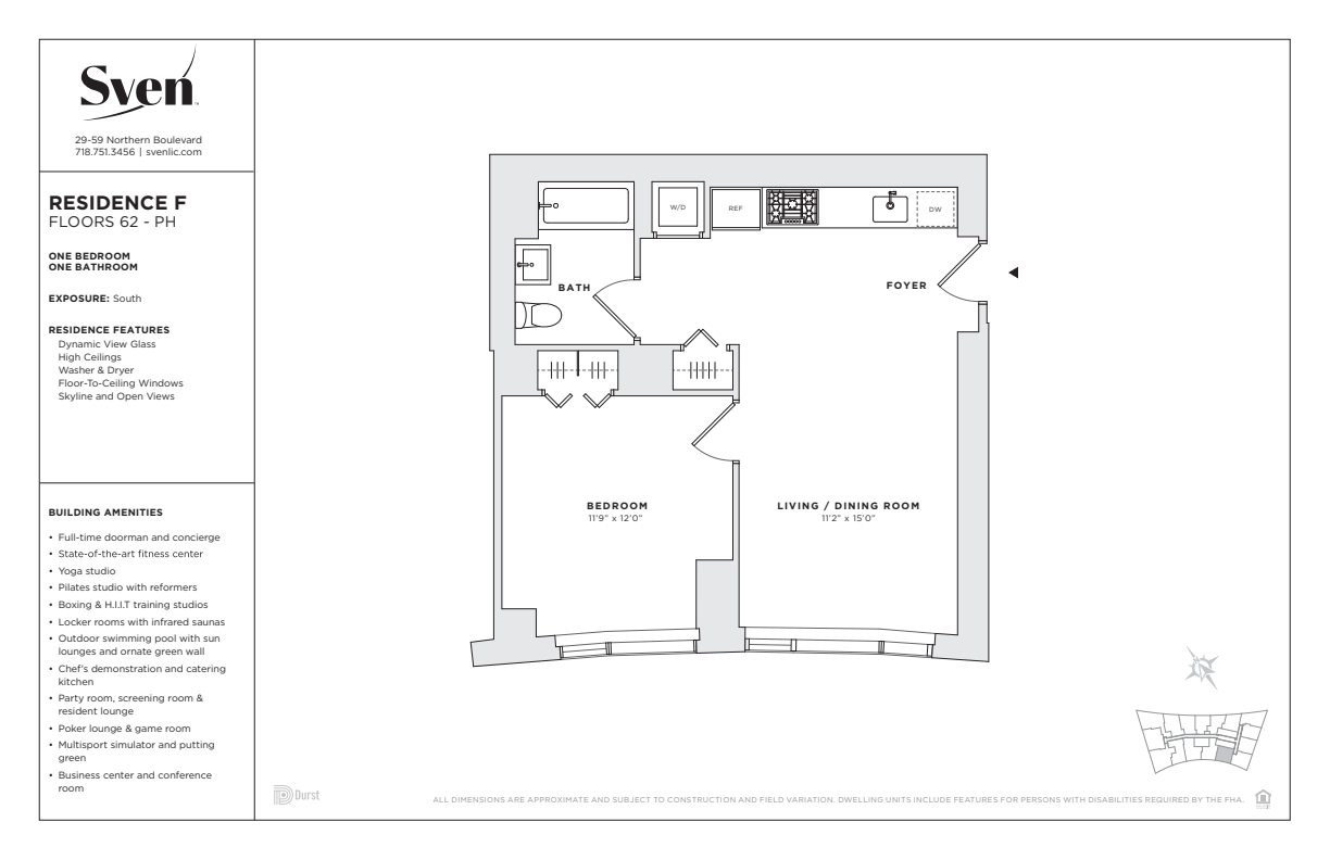Just 10 minutes from Manhattan, Sven offers an unmatched experience; luxury living, exceptional amenities, and a location primed for exploration and access. Designed by Handel Architects, Sven offers studio to three-bedroom residences featuring light oak wood flooring, European quartz countertops, glass tile backsplashes, and stainless-steel appliances from Bosch and Liebherr. Spa-inspired bathrooms boast Italian wood cabinetry, Roca porcelain tile, and high-performance water fixtures. All residences are equipped with high-efficiency Blomberg washers and dryers.