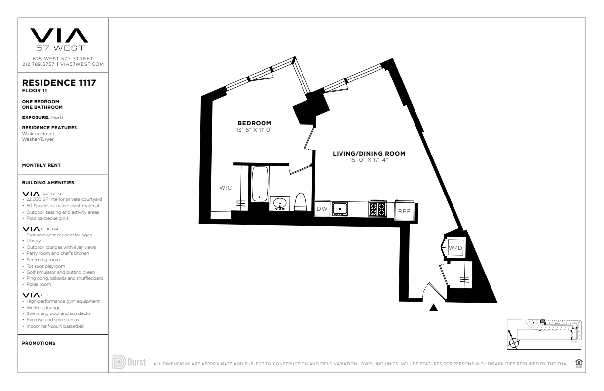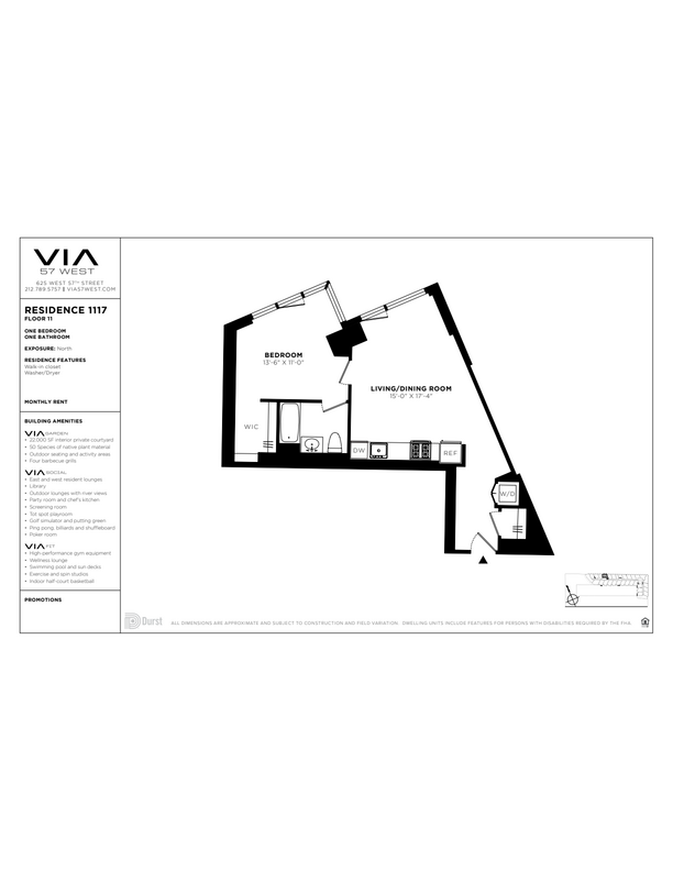 FARE Act Disclosure. This listing is intended to be used by prospective renters and may not be republished without the prior written consent of The Durst Organization. Absent an express written agreement or acknowledgment to the contrary, The Durst Organization and its affiliates (1) do not utilize the services of third-party brokers or agents in connection with the rental of residential apartments and (2) will not assume responsibility for any brokerage fees incurred by a prospective renter. The Durst Organization and its affiliates will not charge or collect fees from a prospective renter except for such fees as permitted by law and disclosed to the prospective renter.