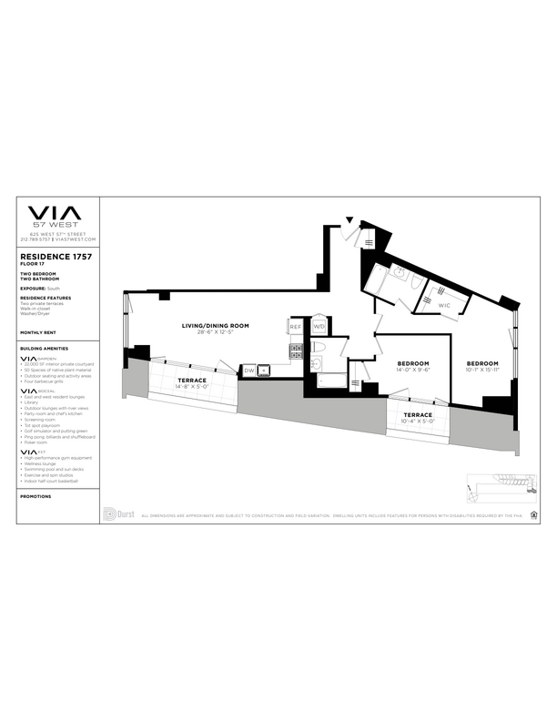 FARE Act Disclosure. This listing is intended to be used by prospective renters and may not be republished without the prior written consent of The Durst Organization. Absent an express written agreement or acknowledgment to the contrary, The Durst Organization and its affiliates (1) do not utilize the services of third-party brokers or agents in connection with the rental of residential apartments and (2) will not assume responsibility for any brokerage fees incurred by a prospective renter. The Durst Organization and its affiliates will not charge or collect fees from a prospective renter except for such fees as permitted by law and disclosed to the prospective renter.